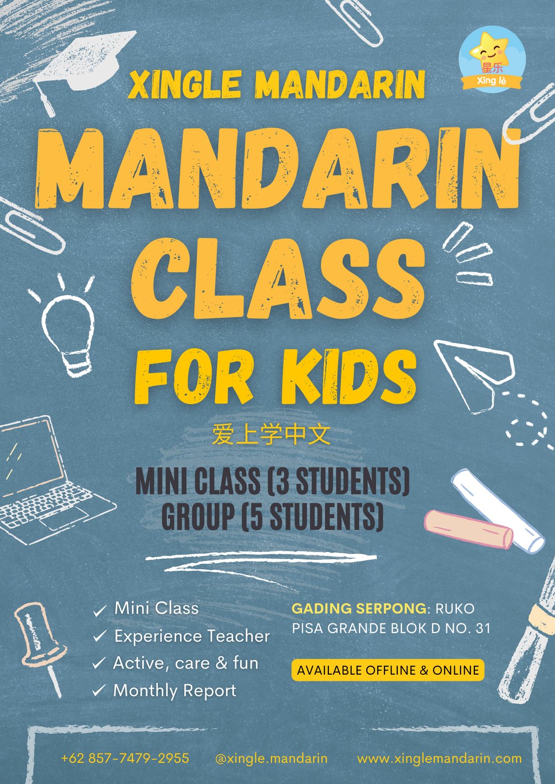 Xingle Mandarin Center - Tempat Les Mandarin untuk Anak-anak Cari les Mandarin di Gading Serpong atau BSD? Xingle Mandarin Center adalah pilihan terbaik untuk anak-anak yang ingin kursus bahasa Mandarin. Kami menawarkan kelas Mandarin dengan metode belajar yang fun, interaktif, dan sesuai kurikulum sekolah. Dengan laoshi berpengalaman dan suasana belajar yang nyaman, anak-anak akan merasa betah sekaligus meningkatkan kemampuan bahasa Mandarinnya. Yuk, daftarkan sekarang untuk pengalaman belajar Mandarin terbaik!